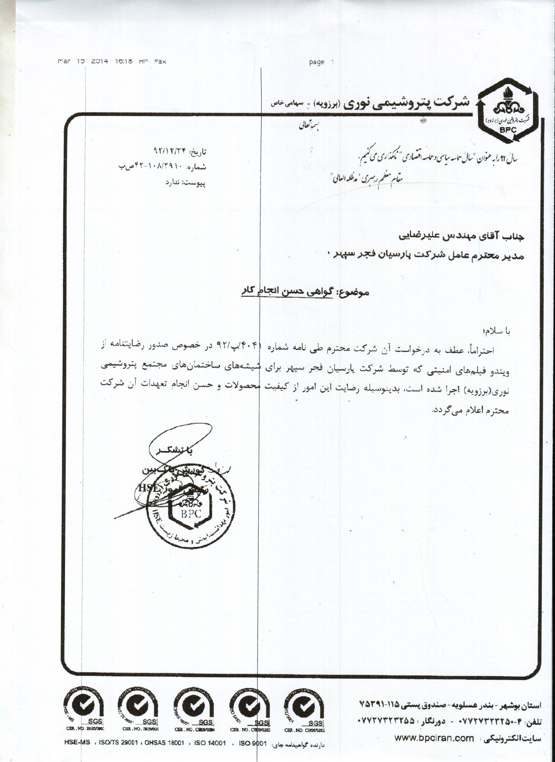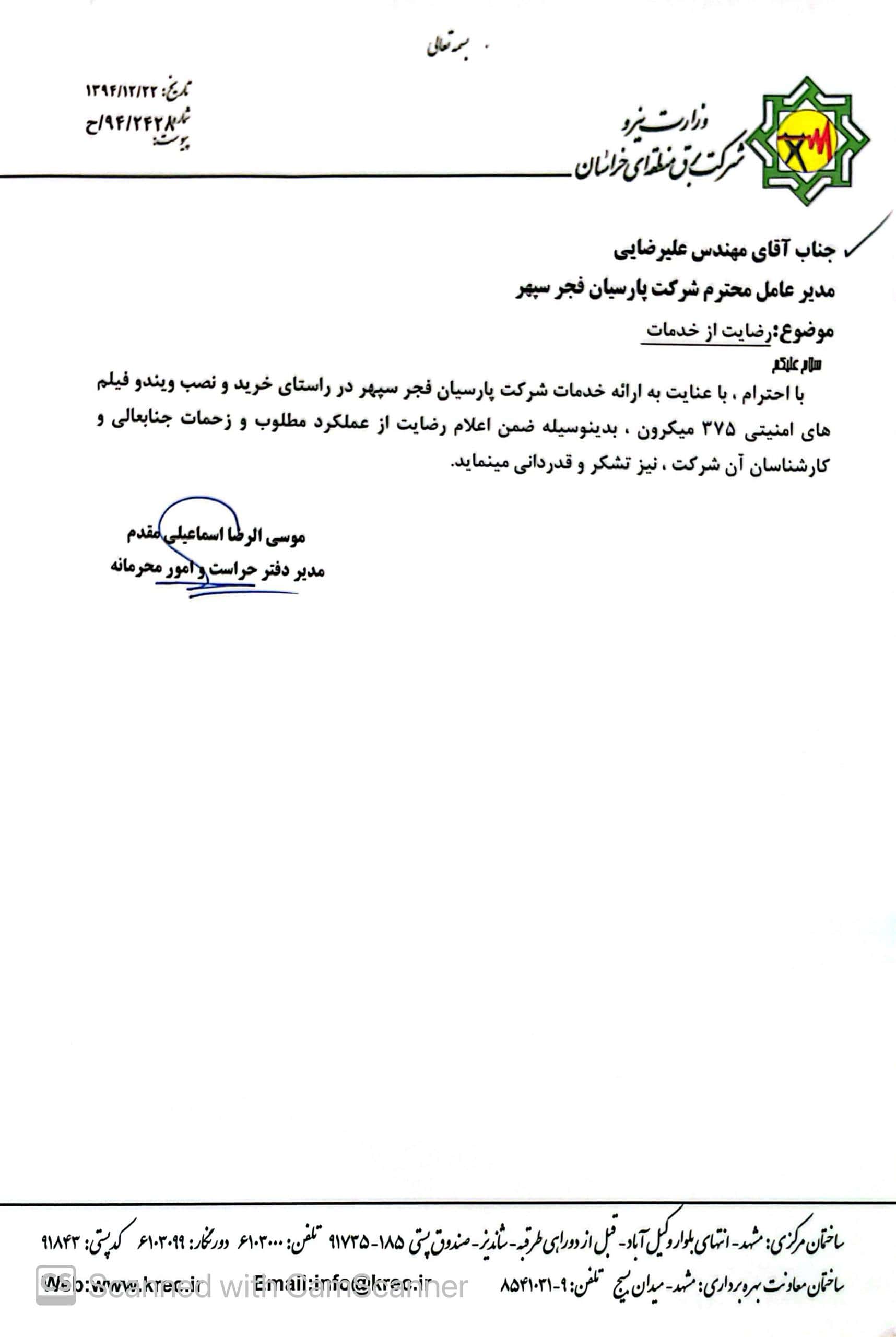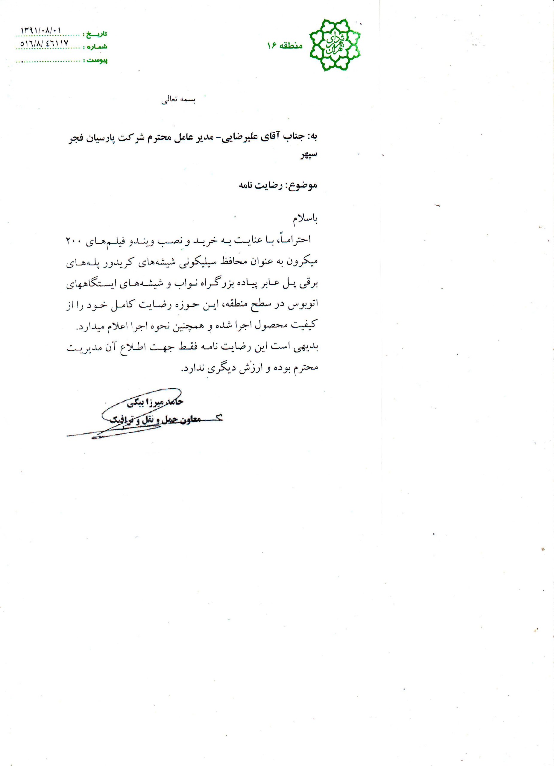 ویندوفیلم امنیتی شیشه (شرکت پارسیان فجر سپهر)